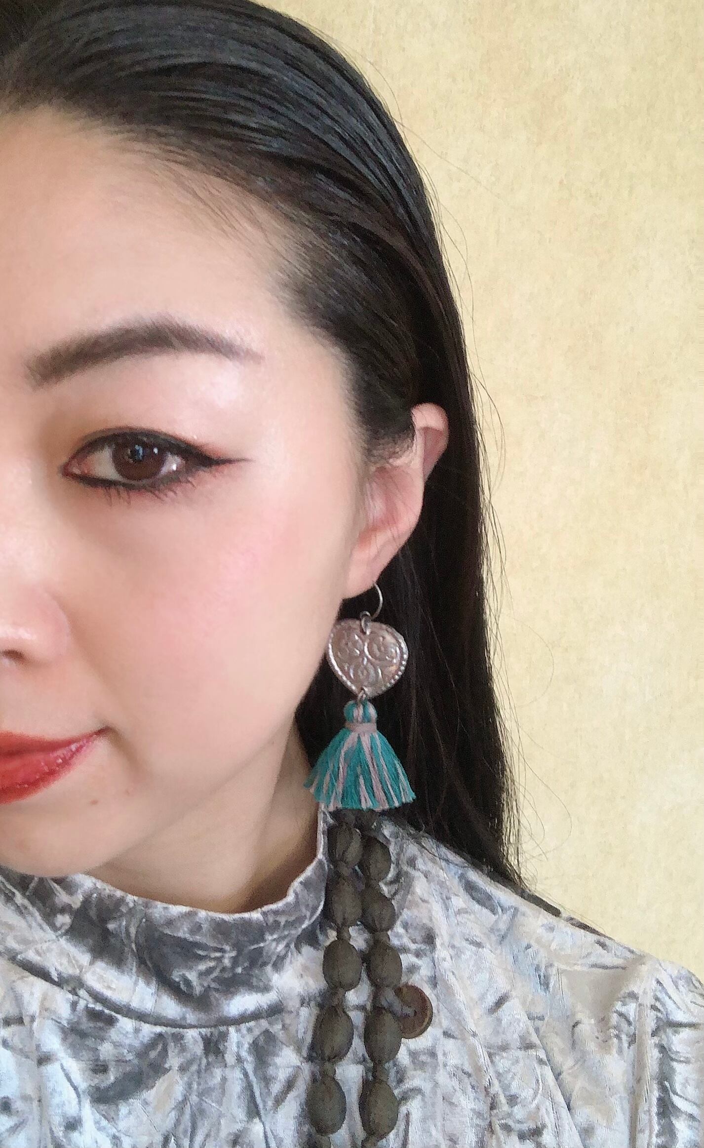 メタルのAmuletとタッセルのハンドメイドピアスです。